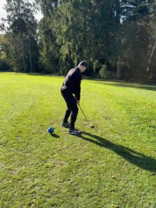 De dag begon al vroeg met het uitzetten van de par 3 baan: 18 holes, inclusief een paar hindernissen. Omdat hole 12 eruit lag, had Richard met pijlen duidelijk aangegeven hoe iedereen moest lopen – goed geregeld!